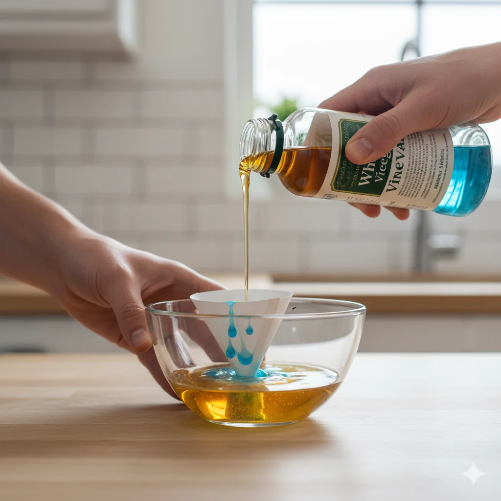 - Pour vinegar into the bowl.